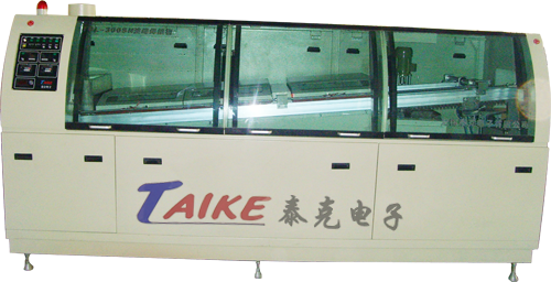 產(chǎn)品系列:波峰焊 產(chǎn)品型號(hào):TBL型 重要特性: 1、適用無(wú)鉛制程 2、最大焊接寬度350毫米 一、機(jī)身與整機(jī) 1、外型尺寸:4000×1350×1650 2、表面處理:靜電噴塑,顏色淡灰。 3、觀察與維護(hù):三窗式配置 4、結(jié)構(gòu):以冷軋鐵板成型焊接整體結(jié)構(gòu) 5、設(shè)備排煙口:機(jī)器上方,前后各一 6、使用電源與功率:3Φ380V±5%,50HZ 二、助焊機(jī)噴涂系統(tǒng) 1、噴劑噴頭:日本MEJI,使用量易控制 2、噴頭移動(dòng)方式:步進(jìn)電機(jī),噴敷均勻,焊后可達(dá)到免清洗效果,符合環(huán)保要求。 3、助焊劑槽選用不銹鋼材質(zhì)制作,耐腐耐用。 三、PCB輸送系統(tǒng) 1、導(dǎo)軌:大噸位鋁擠壓線加工的鋁合金導(dǎo)軌,直線度好。(公司開模專業(yè)制作) 2、型式:兩根支撐軌、二根傳動(dòng)軌,保證傳動(dòng)受外力減至最小,并且支撐軌中間有預(yù)應(yīng)力支撐裝置,調(diào)整焊接角度與使用時(shí)抵抗軌道所受外力,保證軌道直線度與壽命。 3、PCB指爪:鈦合金鏈爪 4、速度:0.5—2.5米/分鐘,電子調(diào)速與顯示。 5、調(diào)寬方式:入端調(diào)節(jié)手輪。 四、預(yù)熱系統(tǒng) 1、加熱區(qū):長(zhǎng)度1800毫米;溫度曲線平穩(wěn),PCB不易變形,提升焊接效果。室溫~150度設(shè)定。 2、加熱方式:遠(yuǎn)紅外陶瓷黑晶加熱器并排加熱,升溫快,且溫度均勻,并帶保護(hù)罩和保溫罩,熱效率是目前業(yè)內(nèi)設(shè)備最高。 五、波峰焊爐 1、波峰形式:前波為擾波,后波為平波。 2、爐體保溫及材質(zhì):保溫材料厚度50毫米 3、波峰驅(qū)動(dòng):變頻馬達(dá)直接出力,杜絕用皮帶傳力帶來(lái)可能打滑影響波峰穩(wěn)定因素,高度5--10毫米調(diào)節(jié)。 4、錫爐維護(hù):手輪搖動(dòng)即可移出錫爐,操作方便。 5、加熱方式:多組不銹鋼加熱器,錫爐最高加熱溫度300度 6、錫爐容量:約400公斤 7、波峰全自動(dòng)控制,要PCB板過(guò)錫鍋時(shí),波峰工作,沒(méi)有PCB板時(shí),波峰不工作,有效的節(jié)省了焊錫。 六、清洗系統(tǒng) 1、鏈爪清洗:左右毛刷式清洗,清洗液為酒精,循環(huán)使用,帶儲(chǔ)藏液槽。 七、觸摸屏控制 |